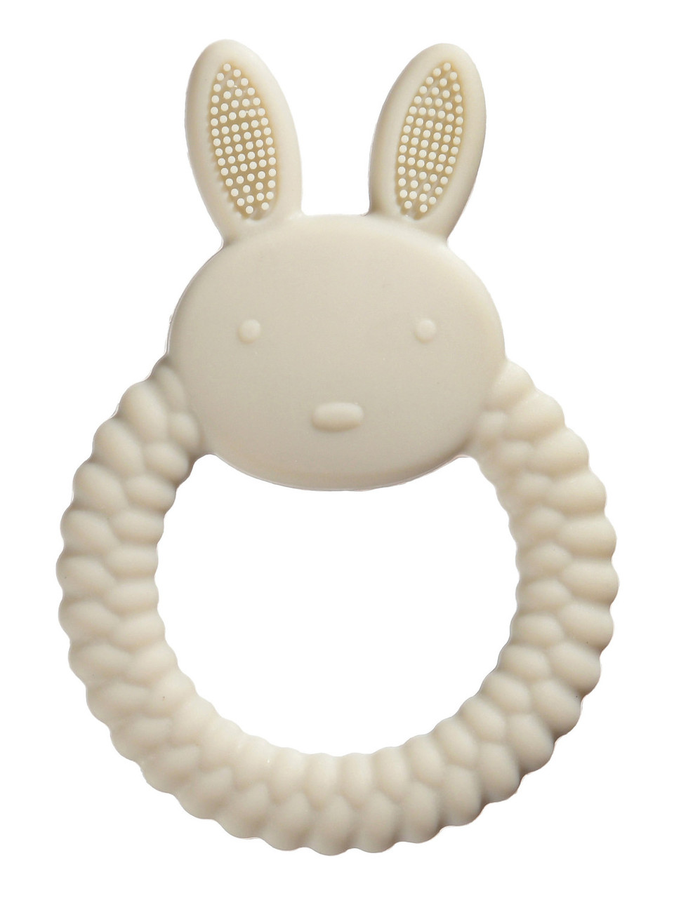 Прорезыватель отлично подходит для самых маленьких малышей, у которых только начинаются резаться зубки. Он выполнен в виде забавного кролика. Ручка игрушки изготовлена в виде кольца с рельефной поверхностью, помогает в развитии мелкой моторики. Ее удобно держать крохотным ручкам малыша. Тактильно приятная на ощупь. Рельеф обеспечивает сенсорную стимуляцию, помогает при захвате, а также позволяет нанести успокаивающий гель при прорезывании зубов и распределить его по деснам.